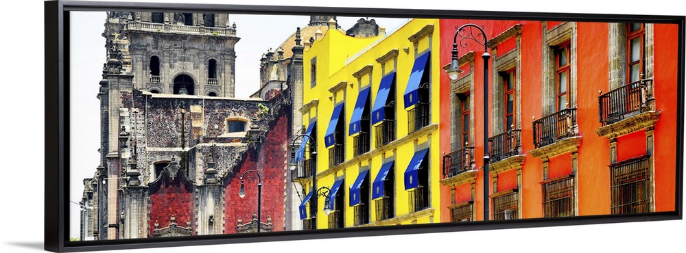 <p>Panoramic photograph of bright and colorful facades, Mexico. From the Viva Mexico Panoramic Collection.</p>