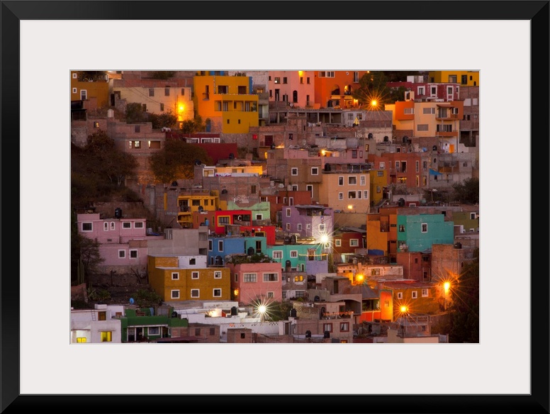 <p>North America, Mexico, Guanajuato. The colorful homes and buidings of Guanajuato at night</p>
