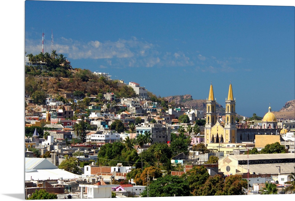 <p>North America, Mexico, State of Sinaloa, Mazatlan. Overview of the historic area of Mazatlan, Basilica of the Immaculate Conception.</p>