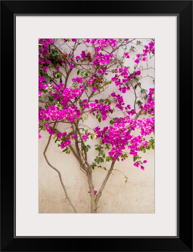<p>North America, Mexico, Pozos. Bouganvilla blooming on wall in the town of Mineral de Pozos.</p>