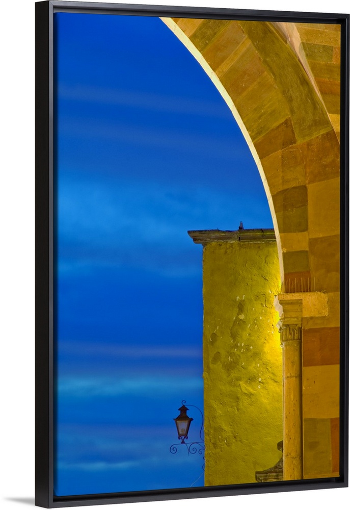 <p>Mexico, San Miguel de Allende, evening sky and light on church archway.</p>