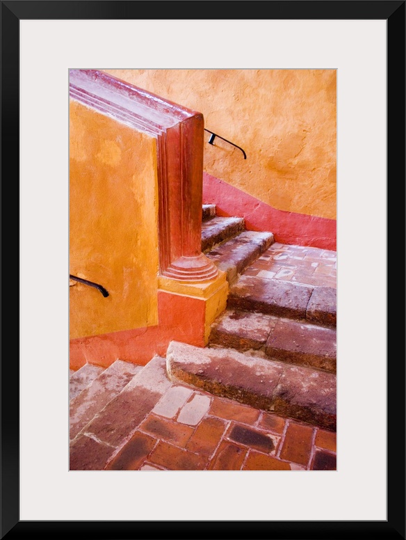 <p>North America, Mexico, Guanajuato state, San Miguel de Allende. Stairs leading to the upper floor of the Centro Cultural Ignacio Ramirez "El Nigromante" (National Insitute of Fine Arts). The building was erected as a convent for the Conception's nuns in 1754, nowadays its a beautiful art institute which offers classes in painting, drawing, sculpture, music and dance. It has two art galleries that constantly show the works of well known artists.</p>