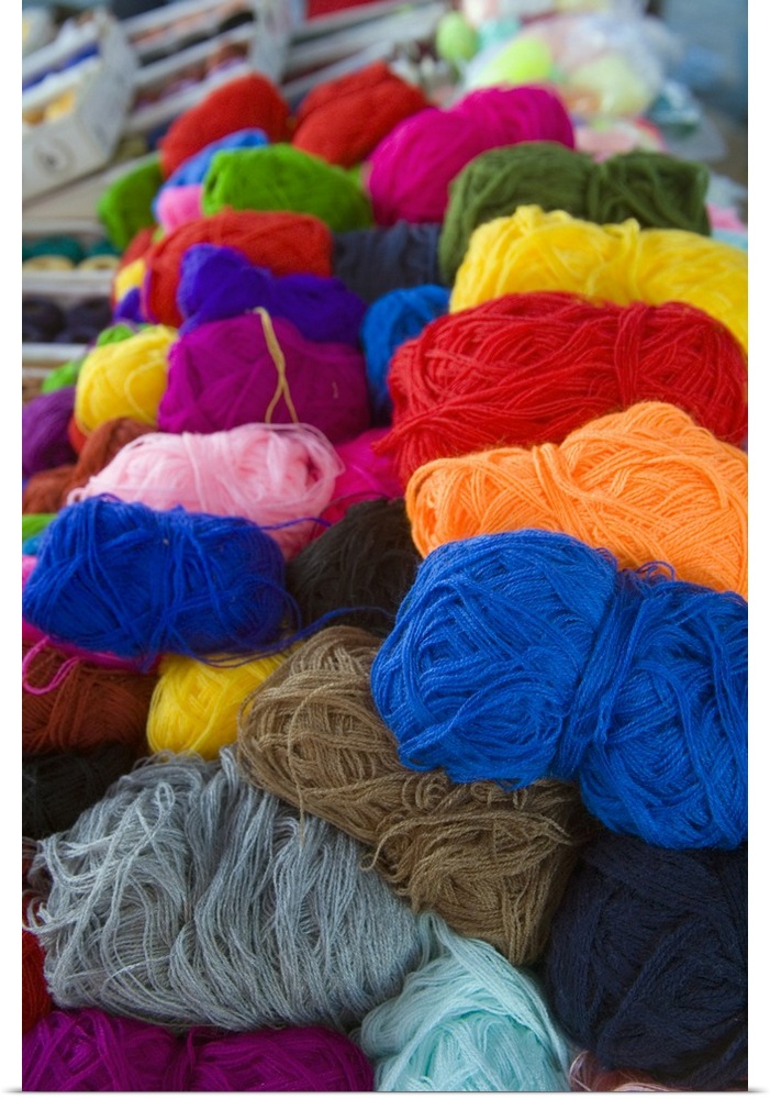 <p>North America, Mexico, Guanajuato state, San Miguel de Allende. Yarn on display at the local Tuesday market.</p>