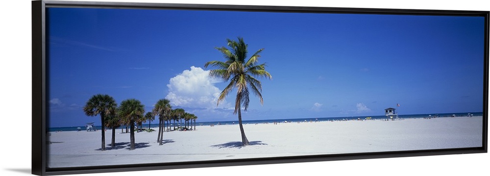 <p>Panoramic photograph of beach with palm trees.</p>