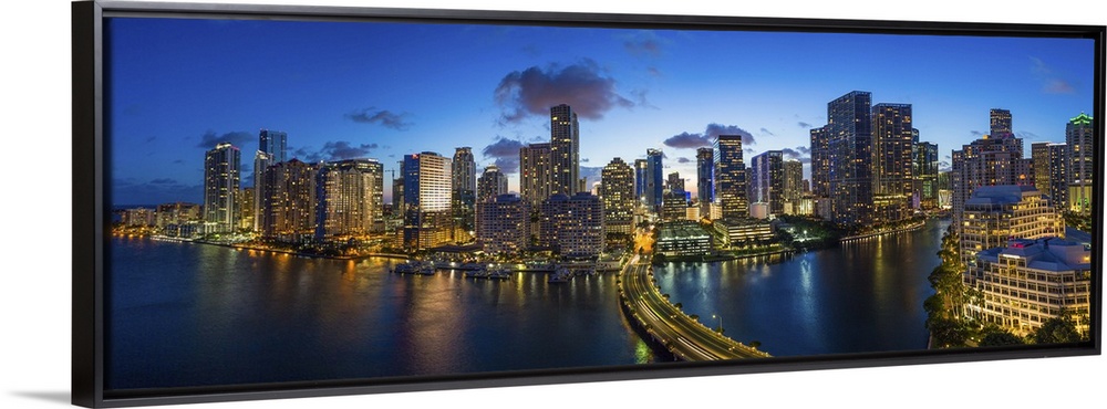<p>View from Brickell Key, a small island covered in apartment towers, towards the Miami skyline, Miami, Florida, USA.</p>
