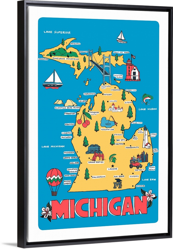 Art Decorative Art Graphic Art Vestiges, Inc. Maps Educational Maps United States Michigan
