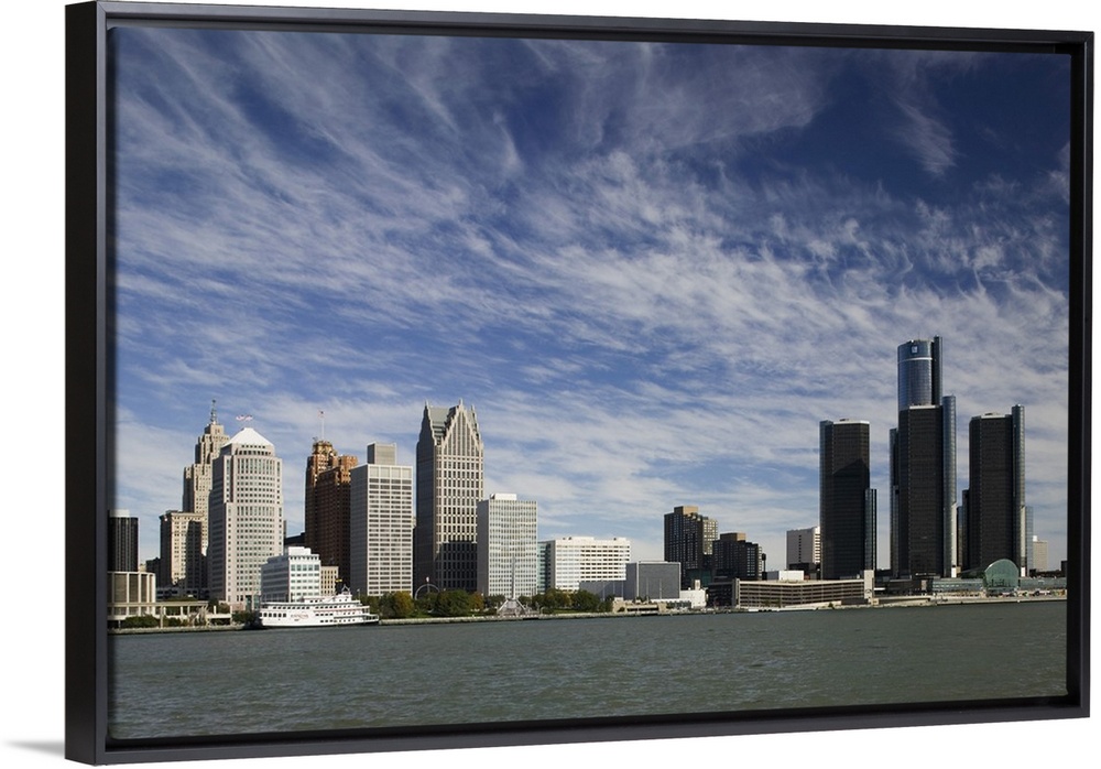 <p>USA-Michigan-Detroit:.City Skyline along Detroit River from Windsor Ontario, CANADA - Morning</p>