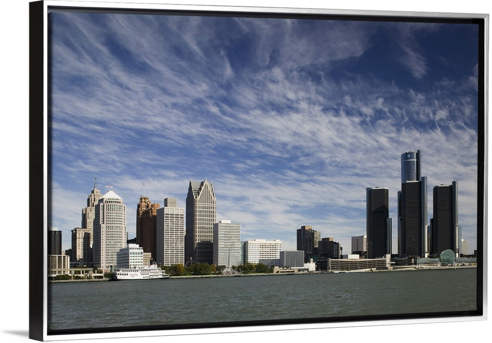 <p>USA-Michigan-Detroit:.City Skyline along Detroit River from Windsor Ontario, CANADA - Morning</p>