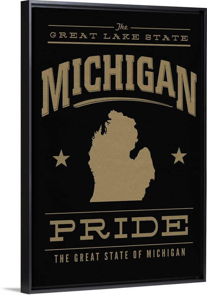 <p>The Michigan state outline on black with gold text.</p>