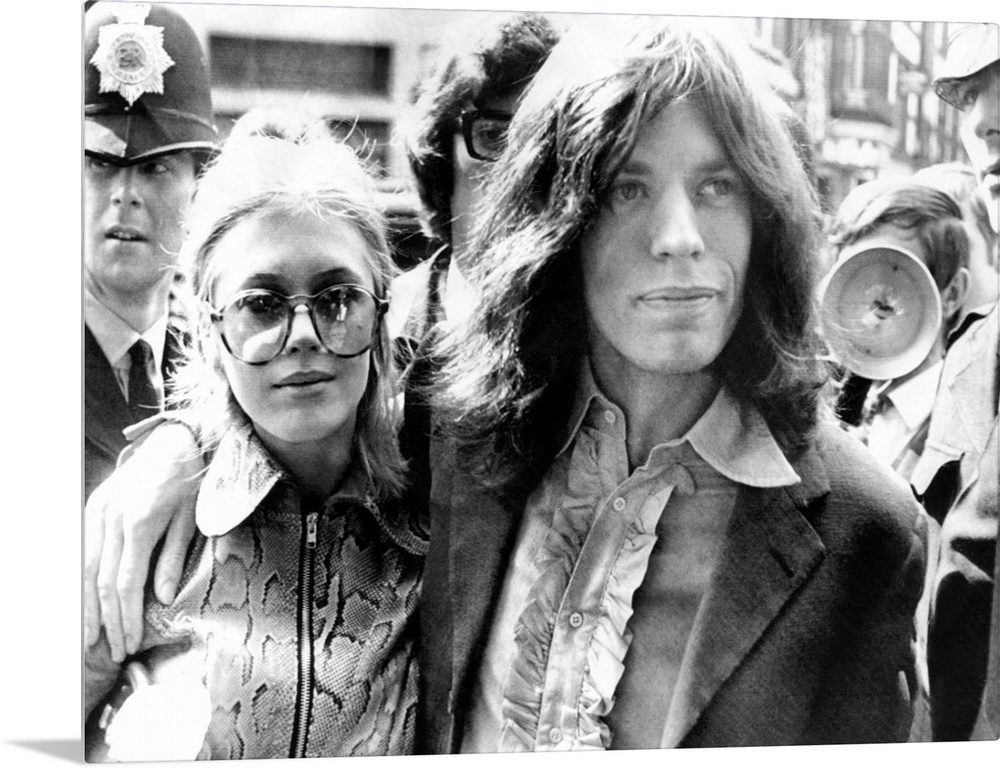 <p>Mick Jagger and his girl friend, singer Marianne Faithful arrive at Magistrate's Court. The couple faced charges of possessing marijuana. They were arrested during a police raid on Jagger's apartment May 26, and were released on bond. May, 29, 1969.</p>