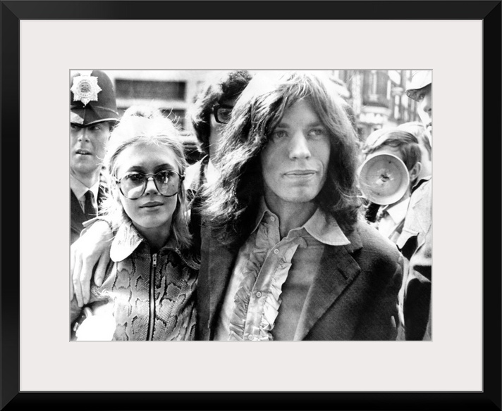 <p>Mick Jagger and his girl friend, singer Marianne Faithful arrive at Magistrate's Court. The couple faced charges of possessing marijuana. They were arrested during a police raid on Jagger's apartment May 26, and were released on bond. May, 29, 1969.</p>