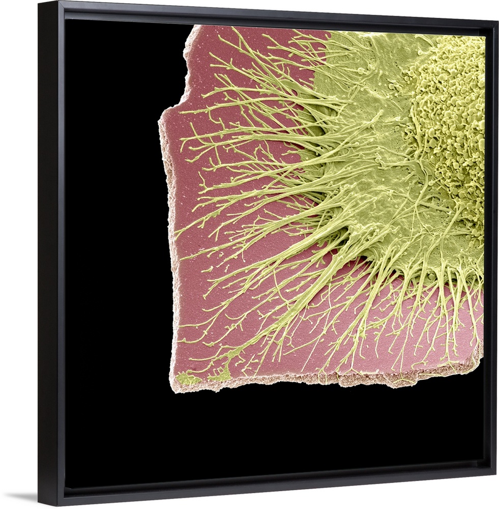 <p>Microglia. Coloured scanning electron micrograph (SEM) of an activated microglial white blood cell. This immune system cell is found in the brain and spinal cord. It is a phagocyte, that is, it engulfs pathogens and foreign objects and destroys them. Magnification: x3000 when printed at 10 centimetres wide.</p>