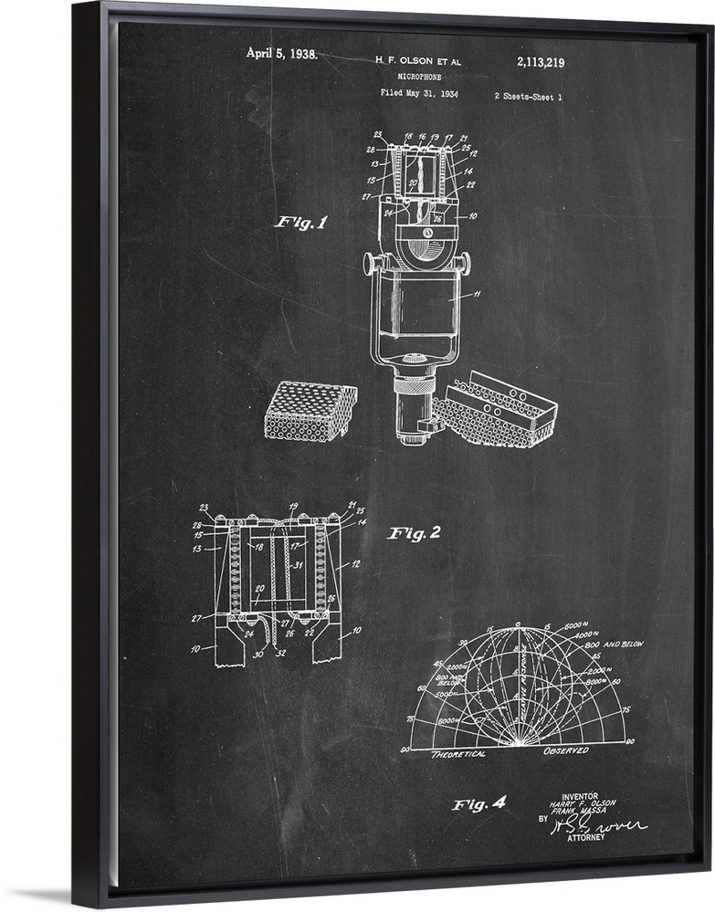 <p>Black and white diagram showing the parts of a microphone.</p>