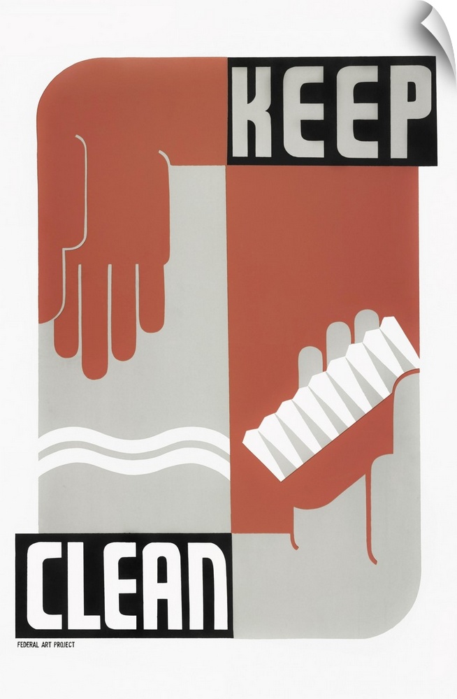 <p>Mid-20th century U.S. Social History print showing a pair of hands and a toothbrush along with the caption 'Keep Clean' in an attempt to encourage people to embrace cleanliness and observe hygiene in their daily lives. The print was released as part of a social hygiene movement which gathered momentum during the early 20th century and continued throughout, finding its way into schools. Artwork by Erik Hans Krause, circa 1937.</p>