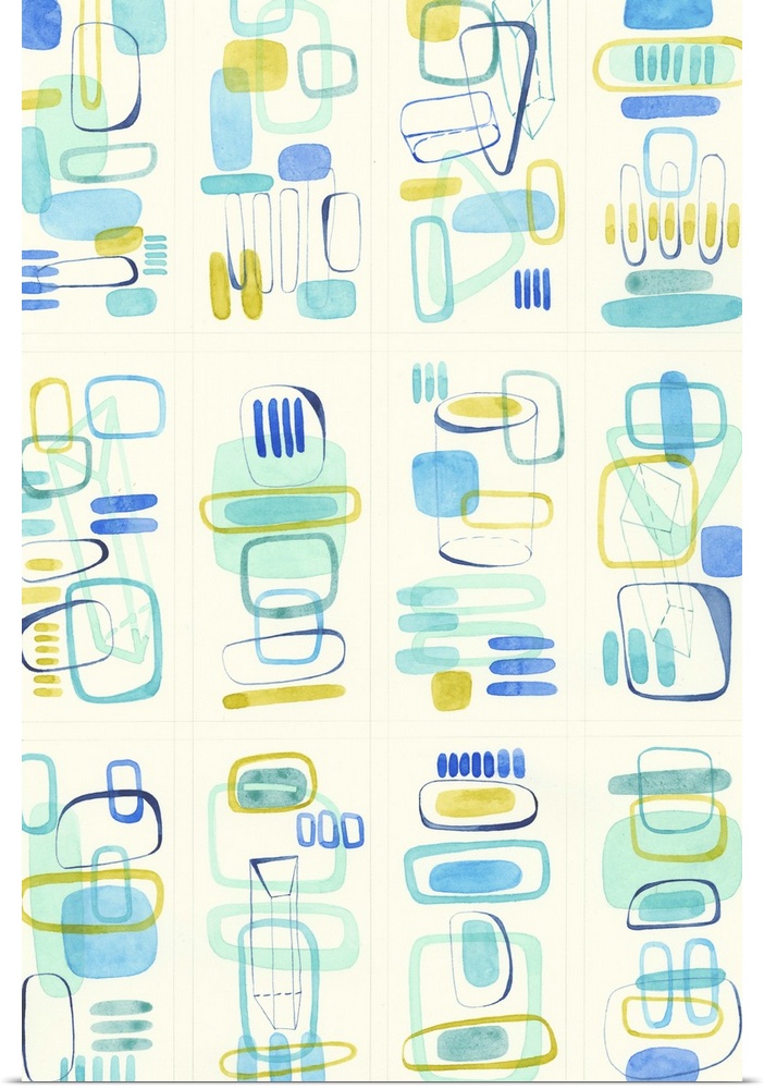 Abstract Art Art by Decor Style Mid-Century Modern Blue Wall Art Contemporary Art Abstracts Nikki Galapon Painting