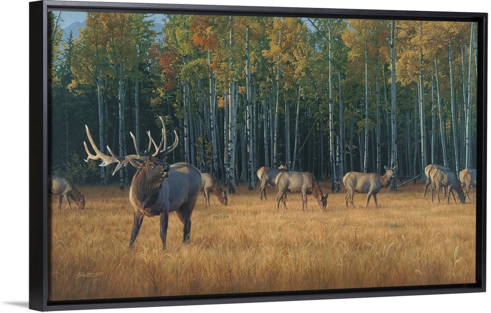 Art Rustic Contemporary Art Landscapes Trees Forest Painting Wildlife Moose and Elk
