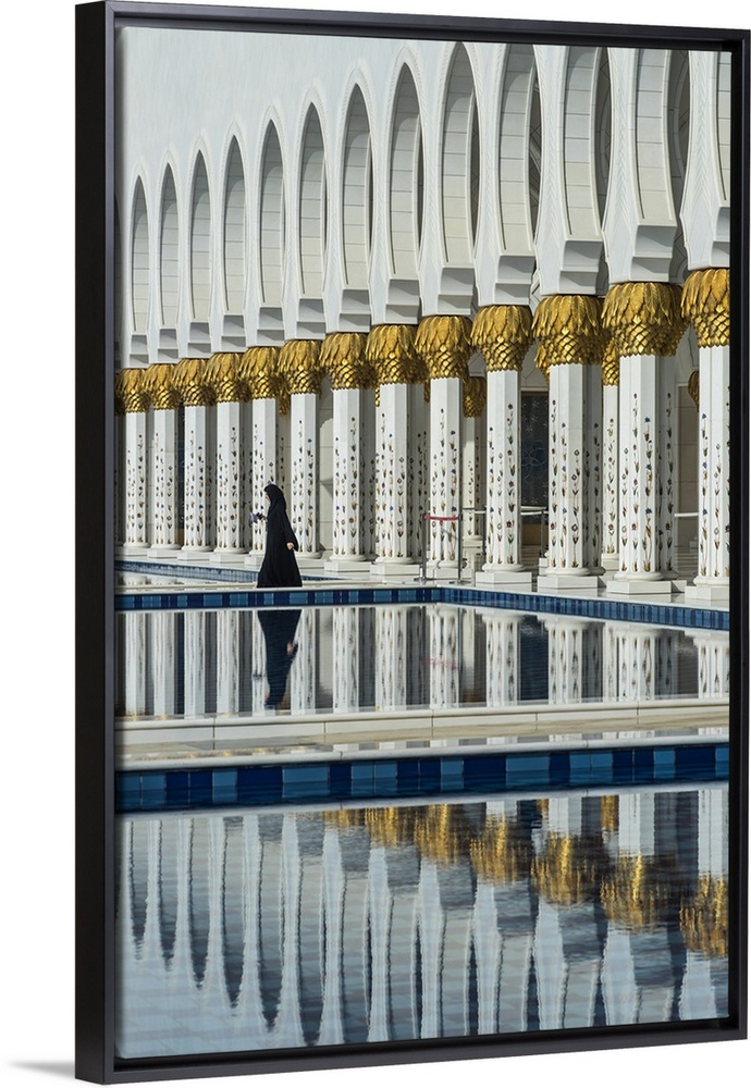 <p>Traditionally Middle Eastern dressed woman walking in the Sheikh Zayed Mosque, Abu Dhabi, United Arab Emirates.</p>