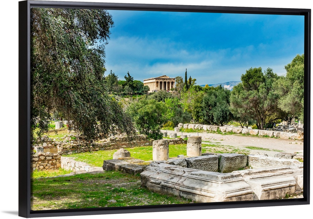 <p>Middle Stoa ruins, ancient Temple of Hephaestus. Agora Marketplace, Athens, Greece. Agora founded 6th Century BC.</p>