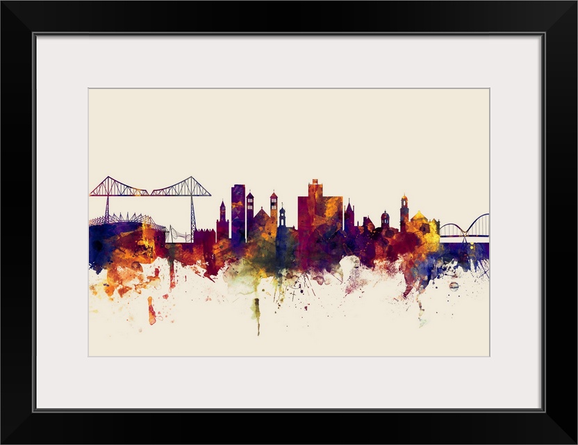 <p>Watercolor art print of the skyline of Middlesbrough, England, United Kingdom</p>
