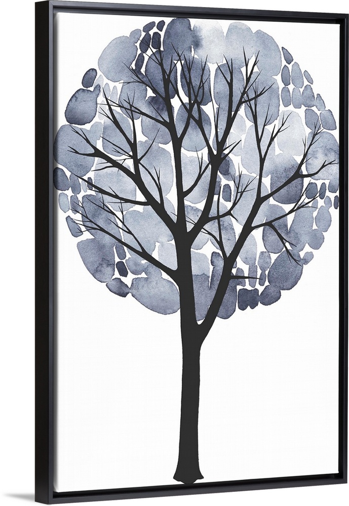 <p>Painting of a tree with grey watercolor leaves.</p>