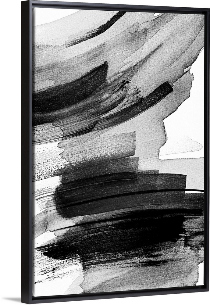 <p>This abstract artwork features layers of black brush strokes in expressive arcs.</p>