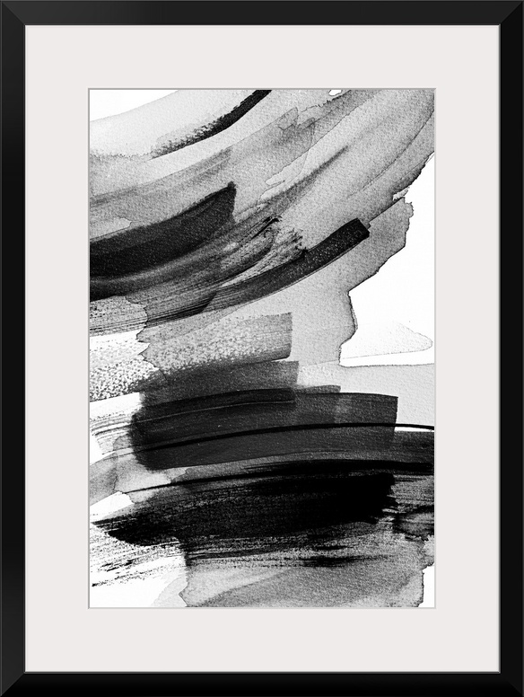 <p>This abstract artwork features layers of black brush strokes in expressive arcs.</p>