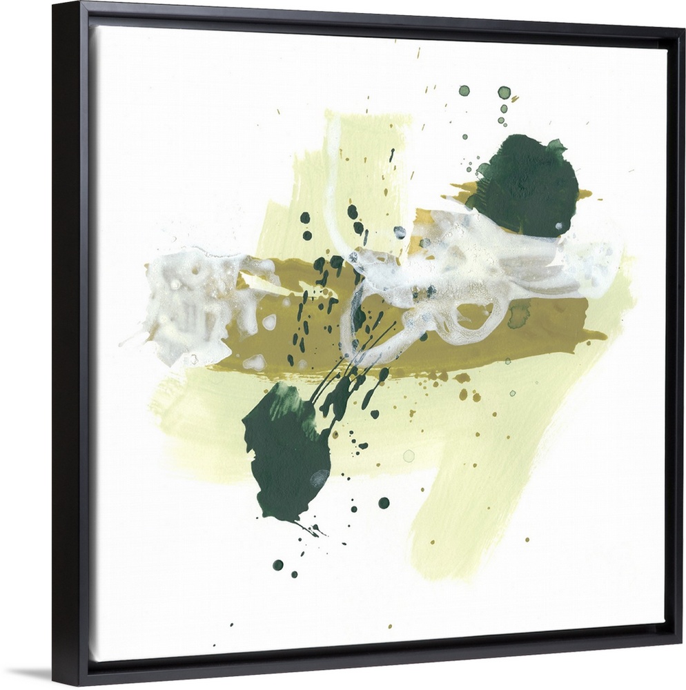 <p>Contemporary abstract painting with paint splatters and wide brushstrokes in a range of greens from olive to forest.</p>