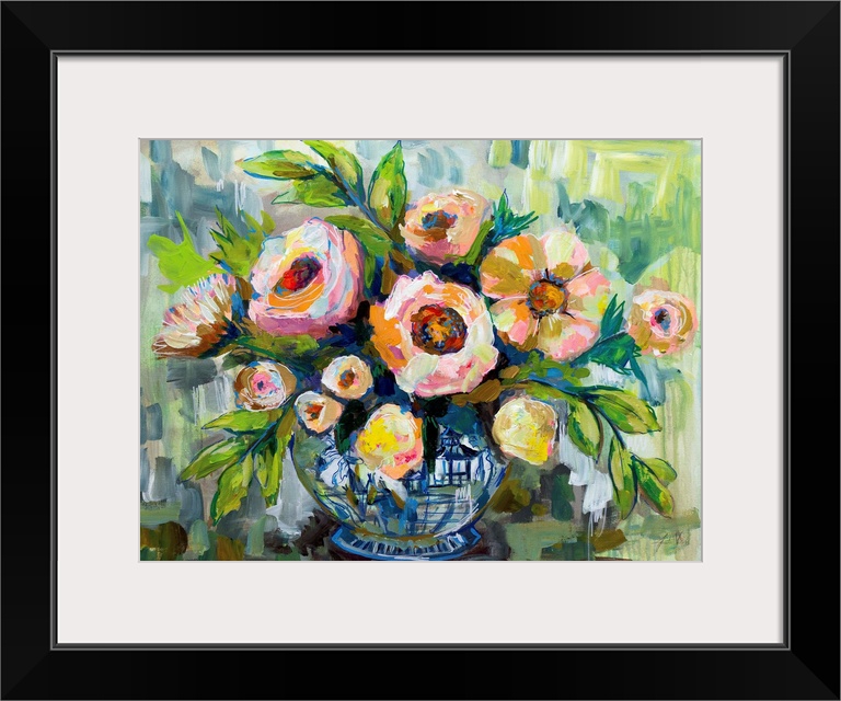 Art Contemporary Art Plants and Flowers Florals Painting Living Coral Pink Wall Art Still Life Jeanette Vertentes