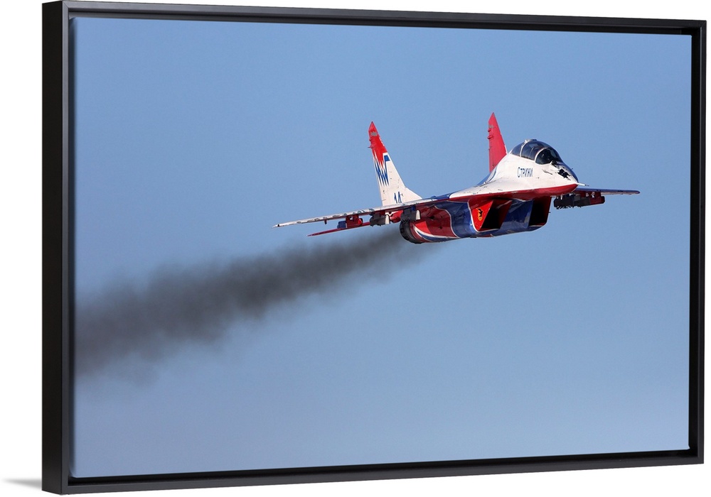 <p>MiG-29UB jet fighter of the Russian Swifts aerobatic team.</p>