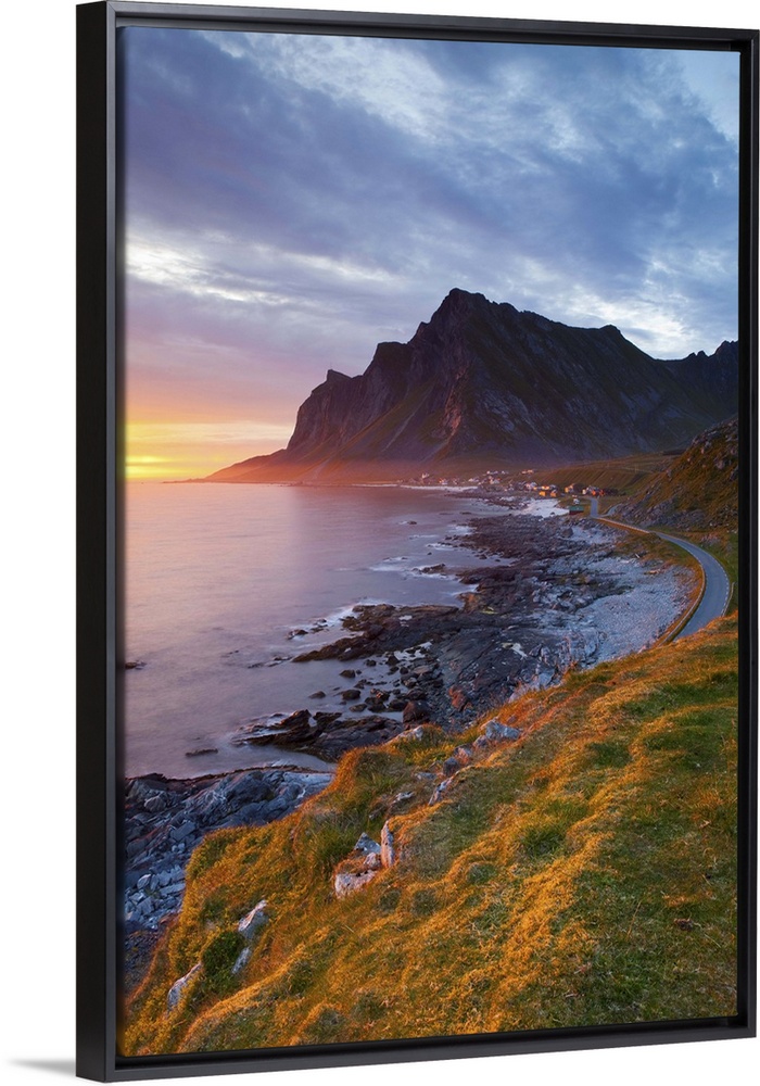 <p>Mightnight Sun over Dramatic Coastal landscape, Vikten, Flakstadsoya, Lofoten, Nordland, Norway</p>