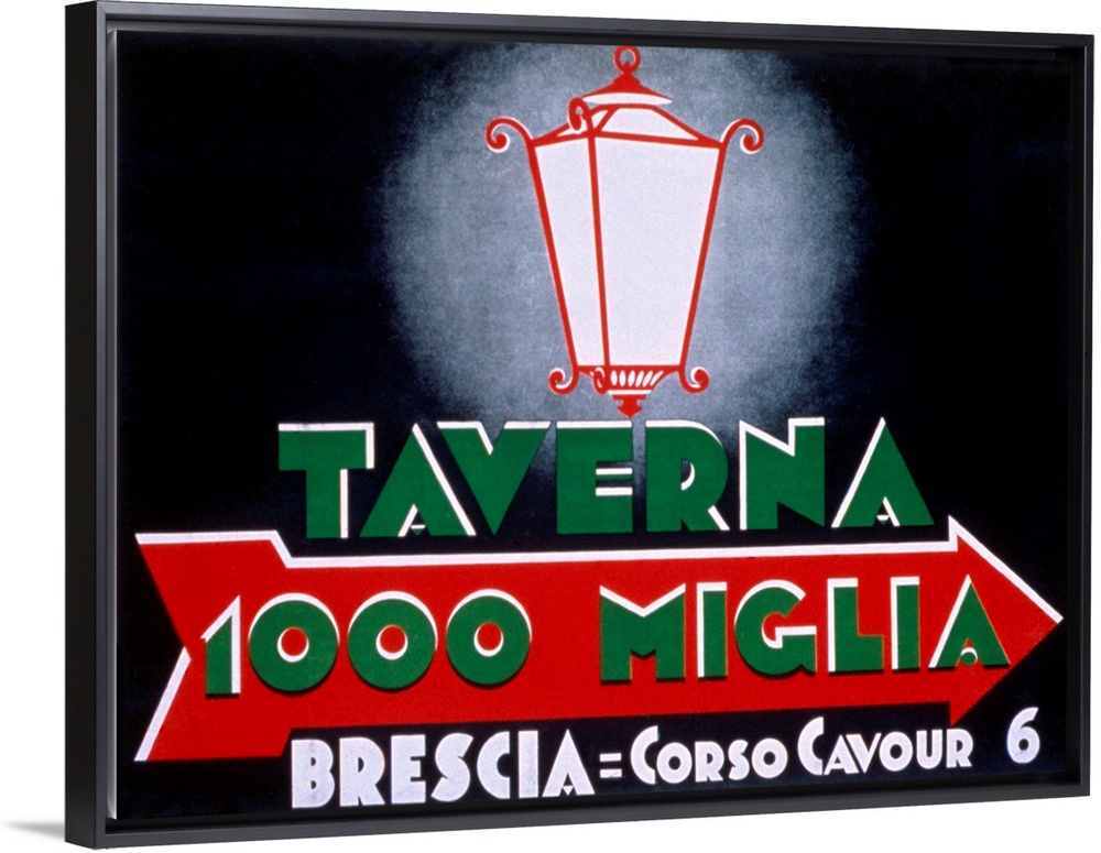 <p>Vintage sign poster advertising an Italian Tavern with a street lamp and arrow.</p>