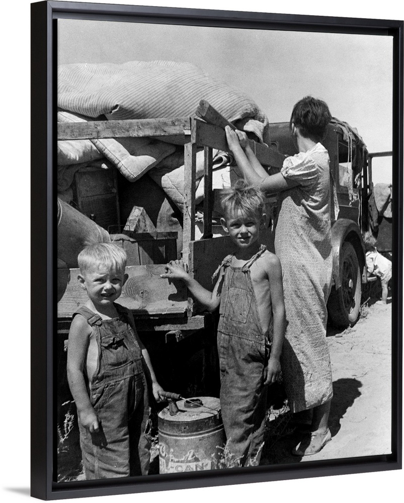 <p>Part of an impoverished homeless family of nine on a New Mexico highway, preparing to sell their belongings for money to buy food.Photograph by Dorothea Lange, August 1936.</p>