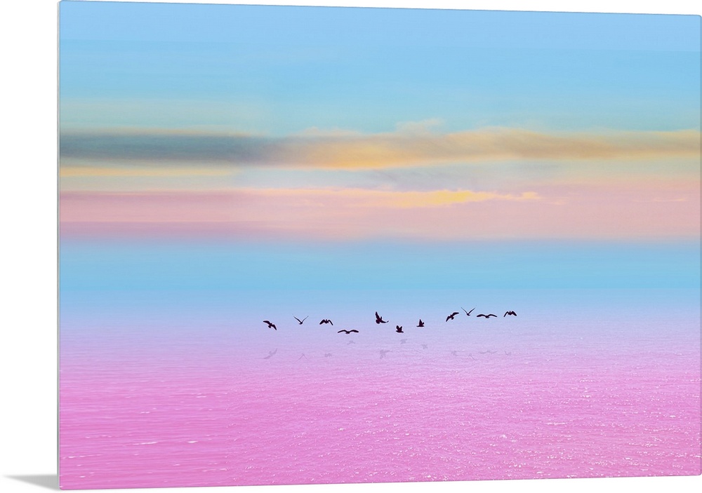 <p>This photo was taken in spring on the pink lake, it is in this season that the migratory birds return following routes invisible to us and drawing celestial geometries of rare poetry.</p>