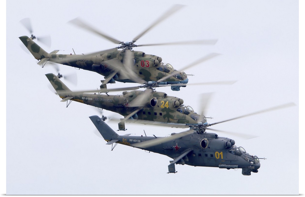 <p>Mil Mi-24P attack helicopters of the Russian Air Force, Torzhok, Russia.</p>
