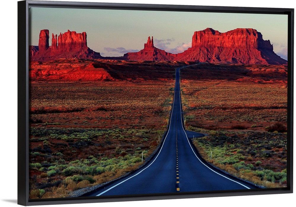 <p>Photograph of a road dividing the Arizona and Utah deserts.</p>