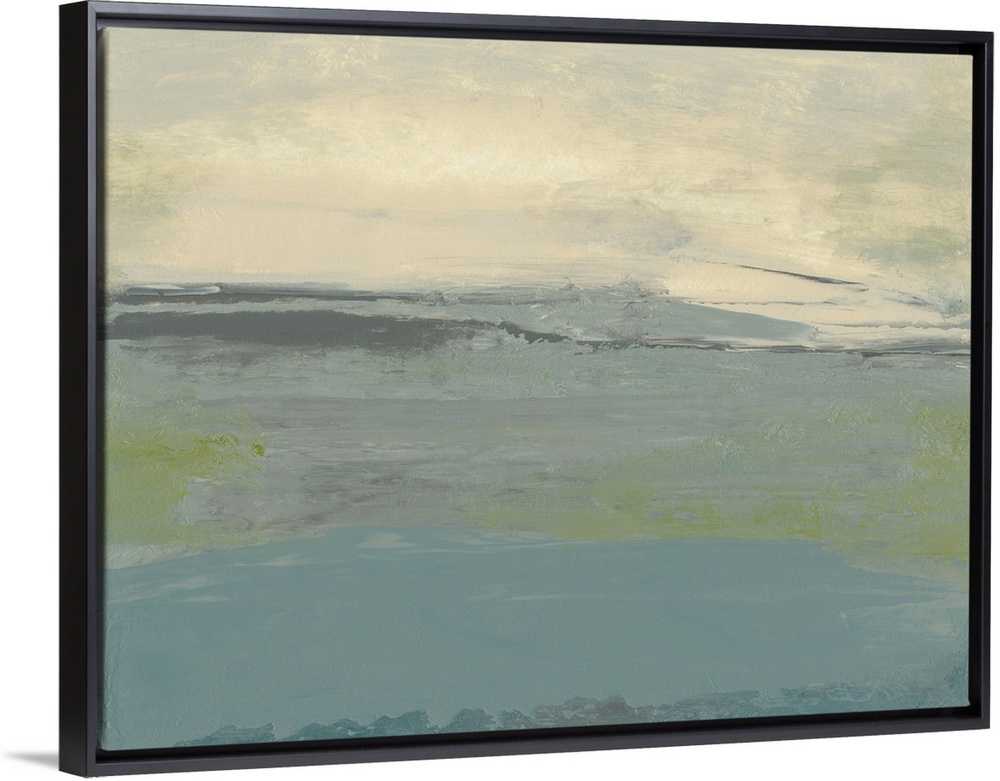 <p>Sharon Gordon creates abstract paintings inspired by the landscape surrounding her. She states, "I am and have always been completely captivated by places near or surrounded by water, especially the ocean. Experiencing a vista, particularly involving bodies of water, enhances the idea that an atmosphere can be an ever-changing, never-ending range of rhythm and volatility while remaining consistently whole." With her art, Gordon intends to evoke and "internal landscape," giving viewers the chance to transport themselves into a larger vista and recalling moments of time and space that they may have visited before.</p>