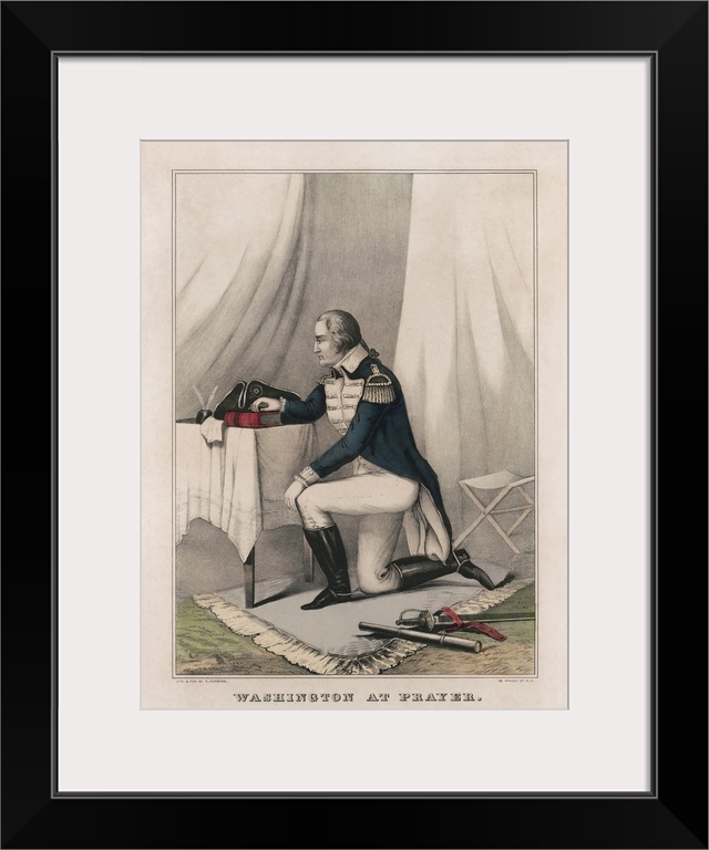 <p>Military history print of General George Washington at prayer in his tent before battle.</p>