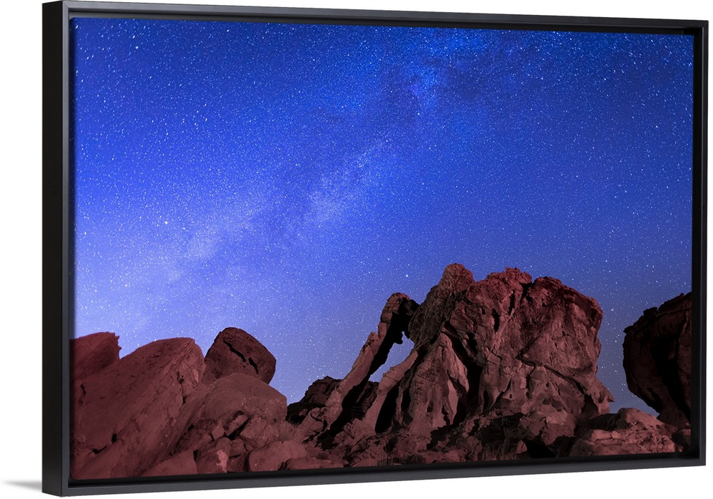 <p>Milky way above Elephant rock formation, Valley of Fire State Park, Nevada, Western United States, USA</p>