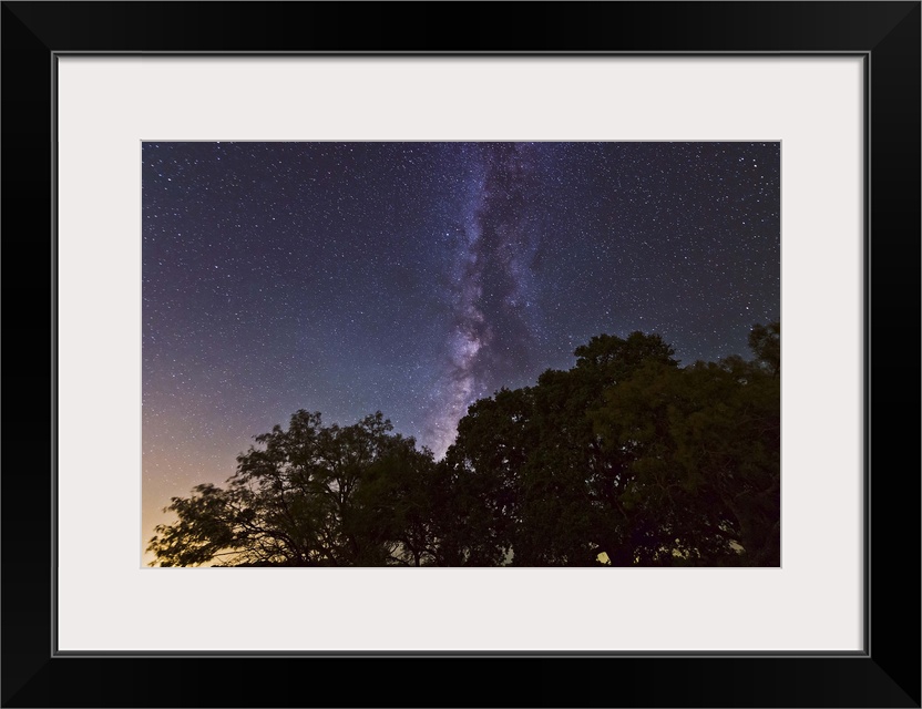 <p>Night landscape with the Milky Way above live oak and mesquite trees, Adamsville, Texas.</p>