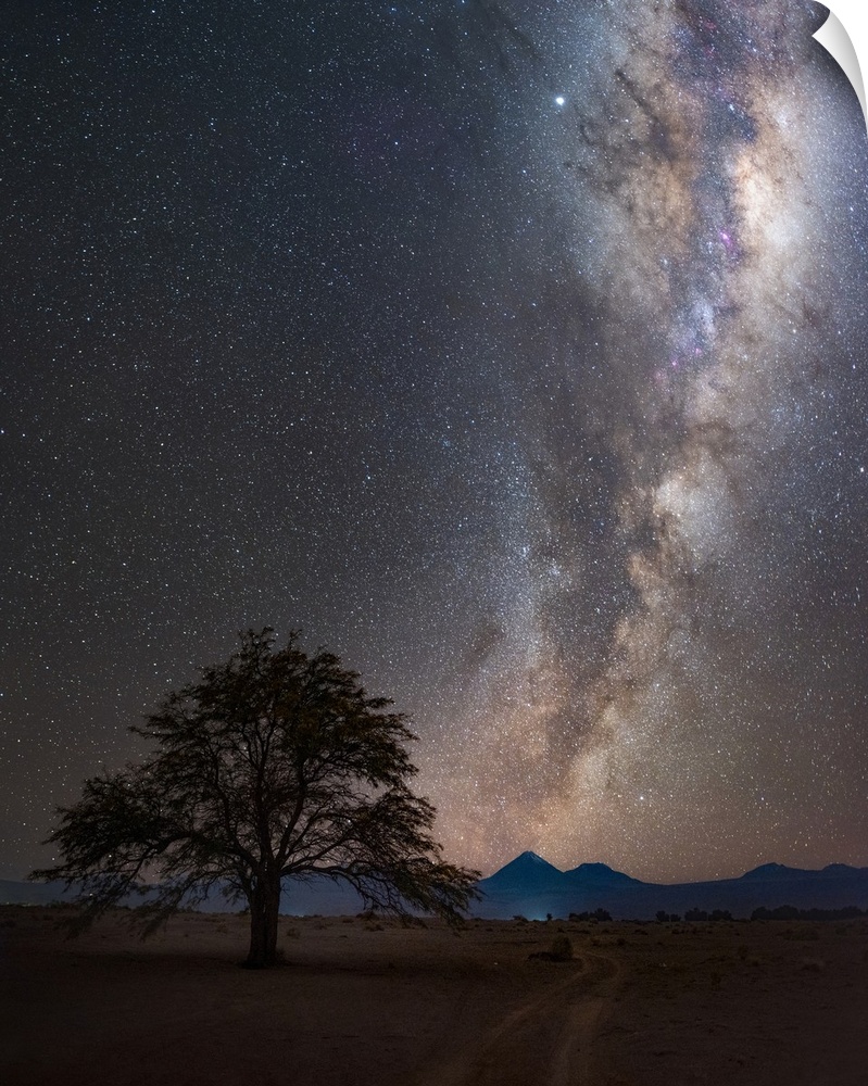 <p>Milky Way in the night sky over the desert village of San Pedro de Atacama, Chile. The galaxy is illuminating the Licancabur stratovolcano on the Chile-Bolivia border. The Milky Way is our galaxy seen from the inside, forming a band of stars and nebulae stretching across the sky.</p>