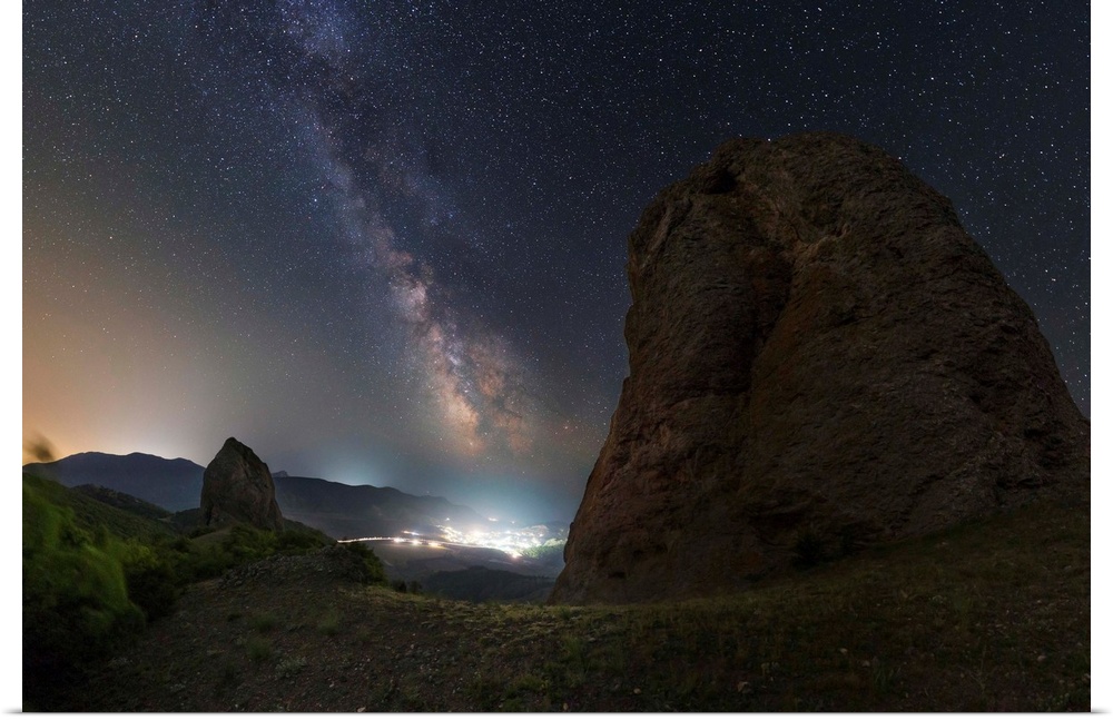 <p>Milky Way over the shining town of Veseloe in Russia.</p>