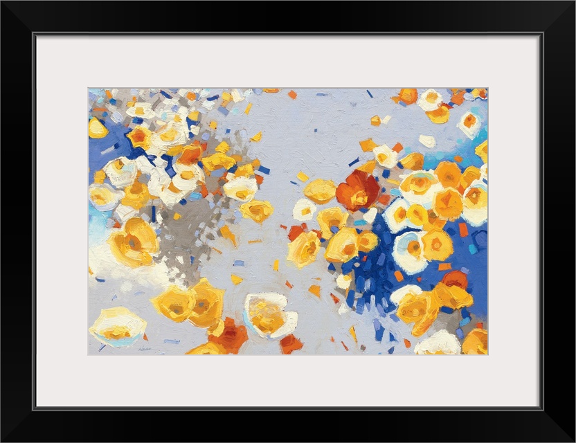 <p>Painting of swirling groups of yellow, white, and red flowers.</p>