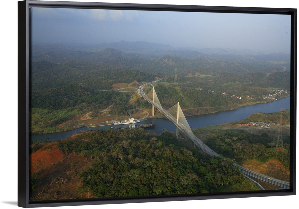 <p>Aerial image of the Millenium Bridge, spanning over the Panama Canal, Panama. The bridge was opened in 2006.</p>