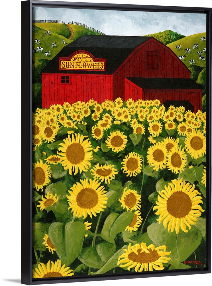 Art Contemporary Art Plants and Flowers Florals Sunflower Folk Art Landscapes Barn Painting Art Poulin