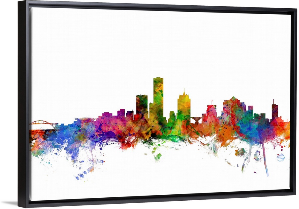 <p>Watercolor artwork of the Milwaukee skyline against a white background.</p>