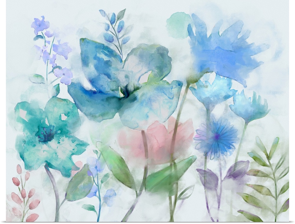 Art Nan Art Blue Flowers Blue Wall Art Decorative Art Florals Painting Watercolor