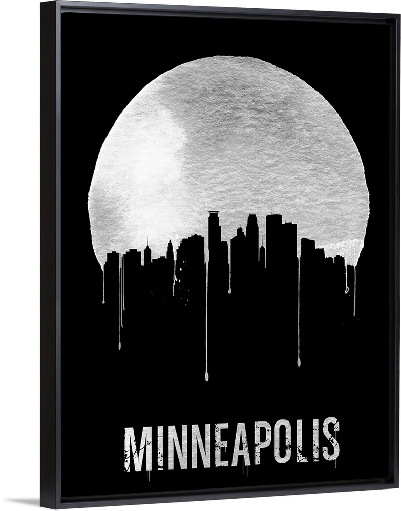 <p>Contemporary watercolor artwork of the Minneapolis city skyline, in silhouette.</p>