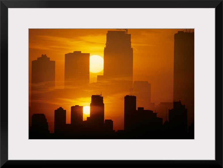 <p>USA, Minnesota, Minneapolis. Multiple exposure of a city skyline.</p>