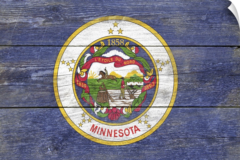 <p>The flag of Minnesota with a weathered wooden board effect.</p>