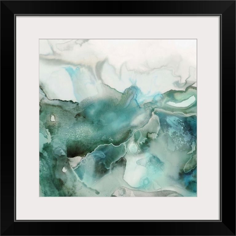 <p>Abstract watercolor artwork of softly blending shades of teal and jade green.</p>